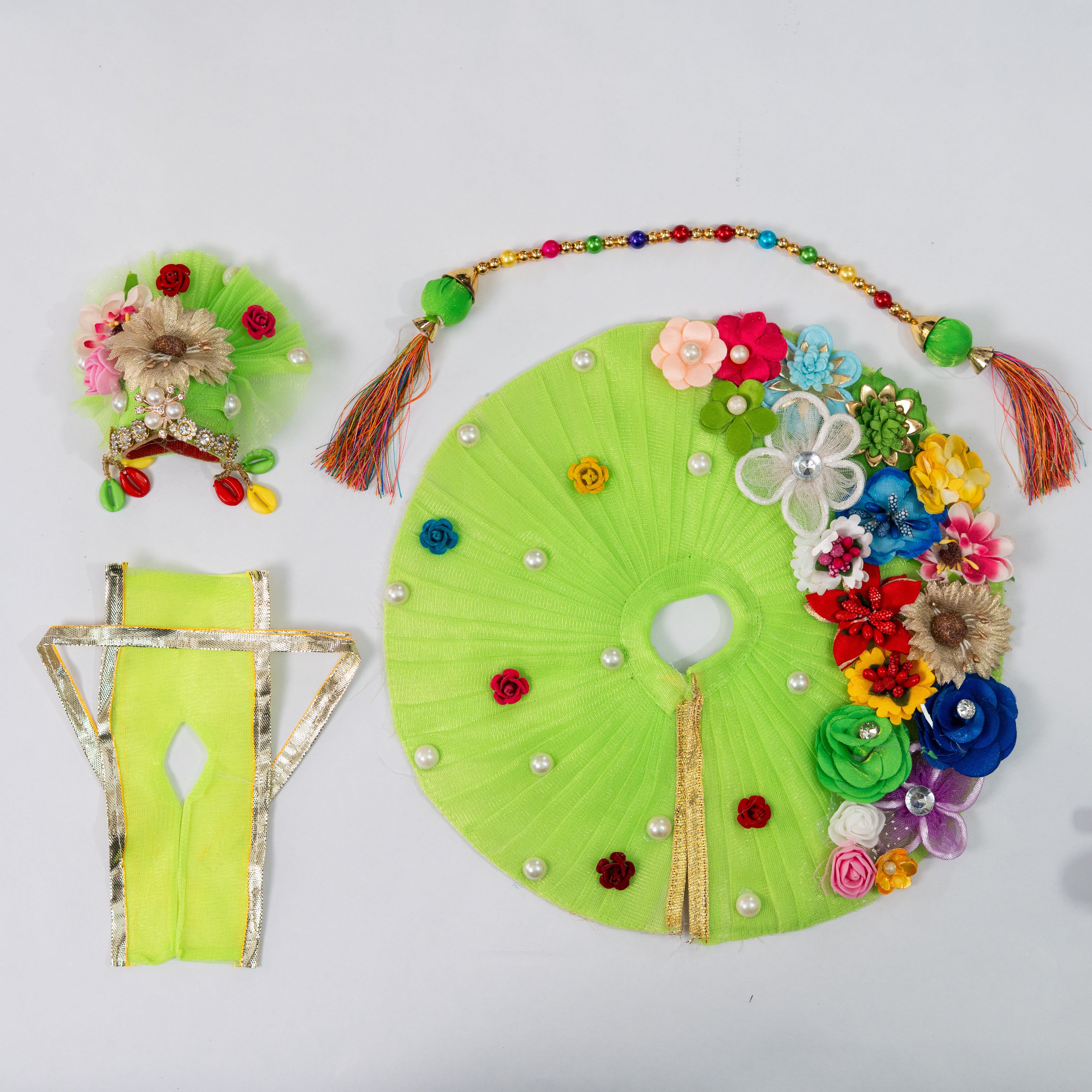 🌿🌼 Green Multiflower Laddu Gopal Dress – A Blooming Tribute to Kanha Ji’s Eternal Love for Nature 🦚💚